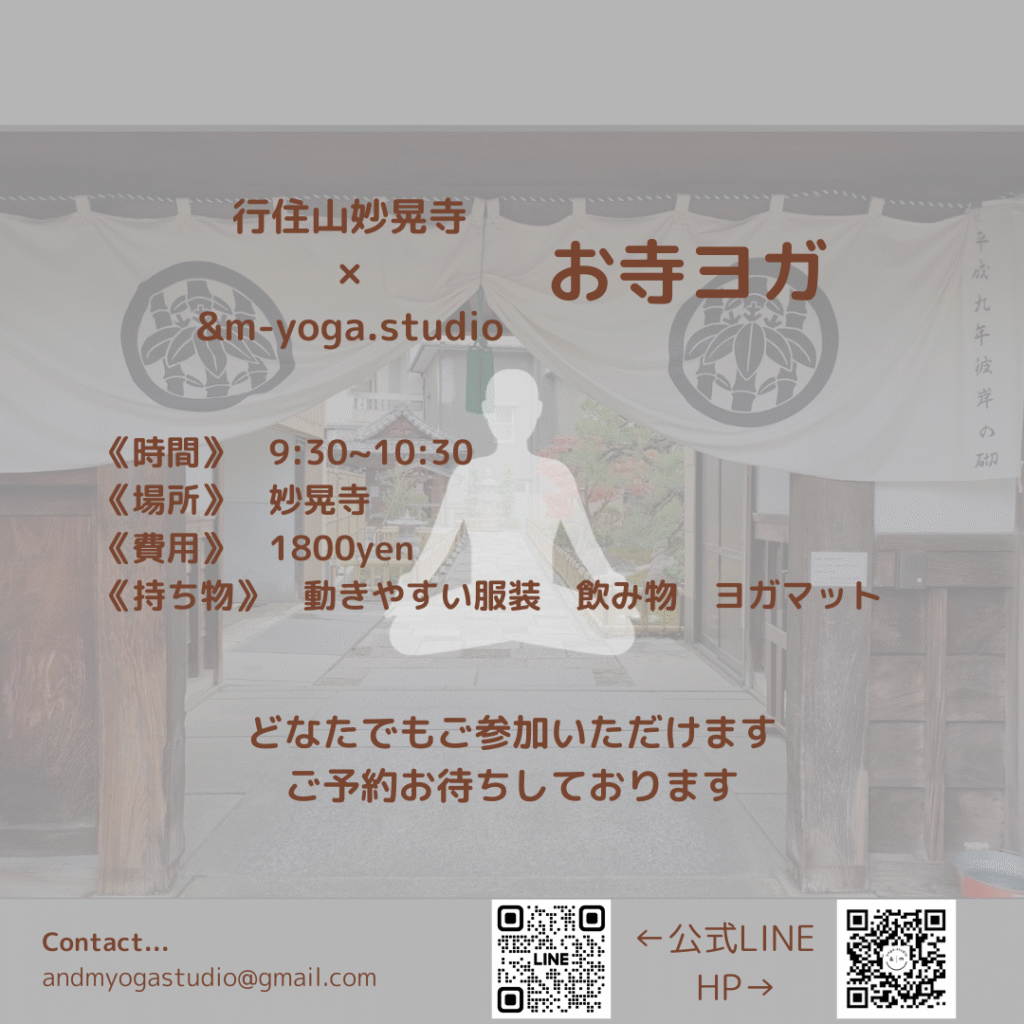 ご好評いただいております、京都西賀茂の妙晃寺さんでのお寺ヨガですが、